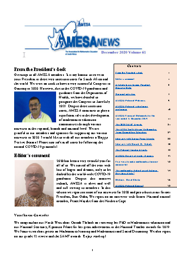 AMESA NEWS keeps members informed about issues and events in AMESA. Submissions for AMESA NEWS should be sent to: The EditorAMESA NEWS Batseba Mofolo-Mbokane University of the Witwatersrand 2193 JOHANNESBURG Tel: 011 717 3411 Cell: 082 594 1271 E-mail: |